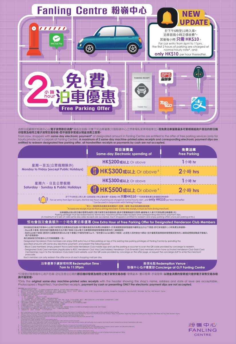 日泊及夜泊优惠,详情可参考"购物泊车优惠"